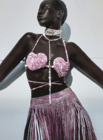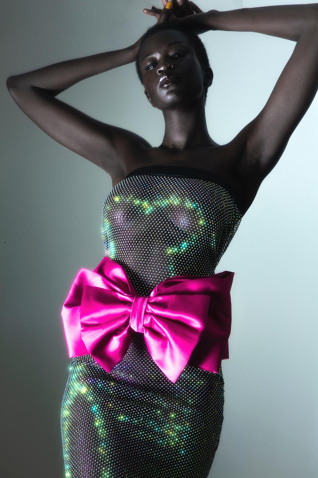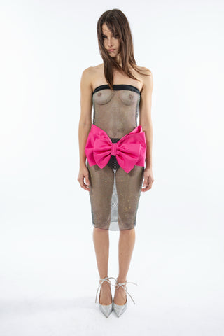Strapless Crystal Cocktail Dress with Fuchsia Silk Bow