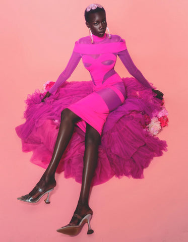 Fuchsia Stretch power mesh with cutout accents long cocktail dress