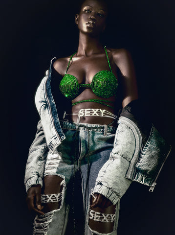90's Baggy Jeans with Sexy Rhinestone embellished sides